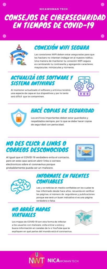 Los consejos que le brindamos en NicaWoman Tech a nuestros usuarios para evitar ser atacados por ciberdelicuentes son los siguientes: