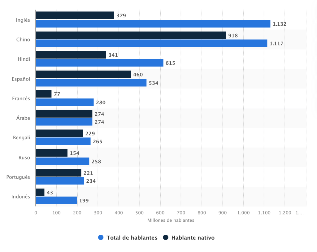 No se puede ocultar que el idioma inglés debería ser una prioridad a cualquier edad (claro es mejor en tu etapa de estudiante). Según Statista el idioma inglés es, en este año 2021, el idioma más hablado a nivel mundial, con más de 1.130 millones de hablantes.