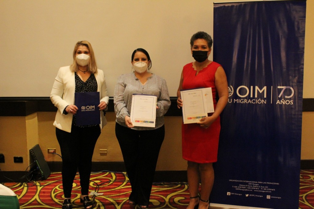 Durante la actividad participaron Janet Martinez, Jefa de Oficina de la OIM en Nicaragua y Blanca Gonzalez Benavides, Presidenta de la Red de Empresarias de Honduras, El Salvador, Guatemala y la Coordinación Regional del proyecto de la OIM OR San Jose.