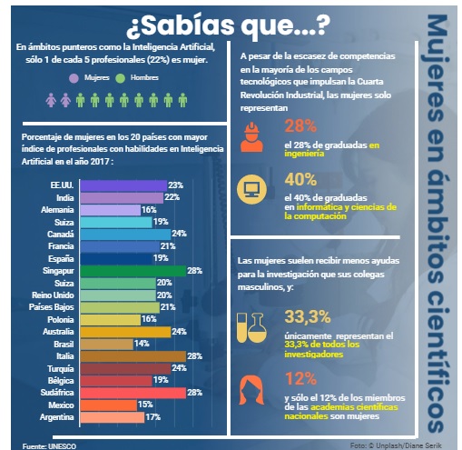 La brecha de género en el ámbito de la ciencia y la tecnología continúa siendo un obstáculo, menos del 30% de mujeres se encuentran inmersas en el mundo de la ciencia (según datos de la UNESCO).
