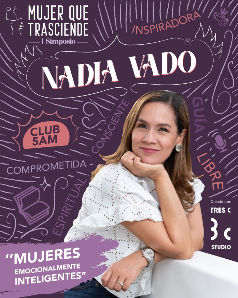 Mujeres emocionalmente inteligentes será la charla que ofrecerá la coach de vida Nadia Vado, quien viene al país especialmente para estar presente en el simposio. “Es un honor poder estar en este maravilloso encuentro organizado con mucho amor de mujeres para mujeres. En mi conferencia les voy a dar herramientas de educación emocional para poder vivir con mayor plenitud. Después de mi conferencia estaré firmando libros y compartiendo con ustedes”, expresó Vado.