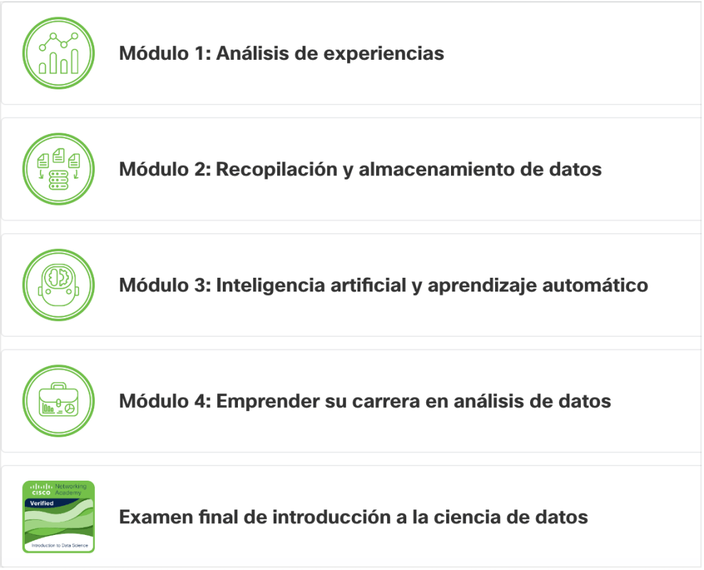 Además del conocimiento inicial en este mundo profesional, la plataforma te brinda un certificado al completar todo el curso con los exámenes en línea y una insignia digital verificable otorgada por Cisco que podrás agregar a tu perfil de Linkedin.