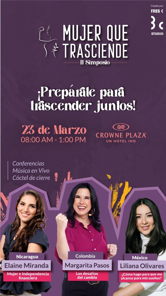 Cerramos el Mes de la Mujer con un evento inspirado en vos, se trata del II Simposio Mujer que Trasciende creado por 3C Studio que se realizará el 23 de marzo en el Hotel Crowne Plaza a las 8:00 a.m.