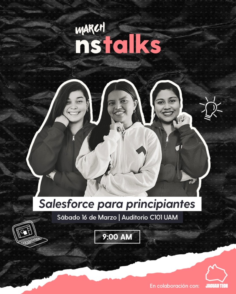 “Salesforce es una herramienta que podés llevarla desde el lado de desarrollo pero también está el lado administrativo, es decir, un Project Manager lo maneja o alguien que quiere llevar un proyecto también. Incluso muchos estudiantes que están haciendo sus prácticas profesionales en las empresas nos comentaron que les estaban pidiendo conocimiento de Salesforce en las empresas”, comenta Lua Salazar, organizadora del nstalks.
