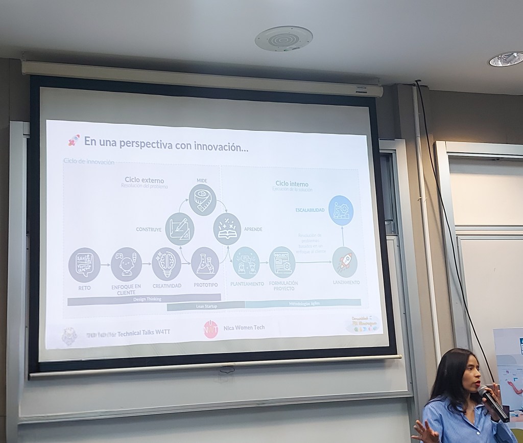 Hace algunas semanas Dolores participó como expositora en el evento Anfitrionas: Hablemos de tecnología organizado por Comunidad PBI Nicaragua, Women For Technical Talks (W4TT), NICAWOMANTECH y la Facultad de Ciencias Económicas de la UAM donde presentó el tema Innovación en la Gestión de Proyectos para la generación de valor.