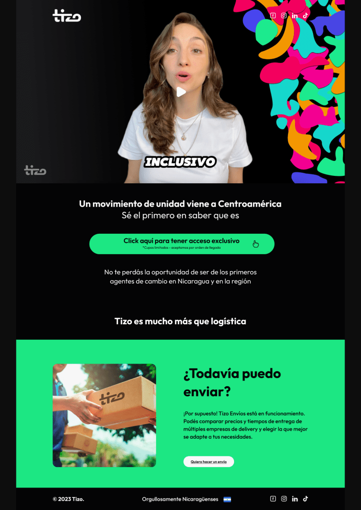 Para este soft launch (BETA), TIZO está aceptando un número limitado de usuarios y comercios registrados. Desde NICAWOMANTECH les invitamos a unirse, probar TIZO hoy y compartir su experiencia. «TIZO no pertenece a una persona, es de todos nosotros, y juntos podemos hacer de esta plataforma un éxito, ayudando a nuestros comerciantes a vender más y contribuir al crecimiento de nuestro país y la región.» concluye Adriana.