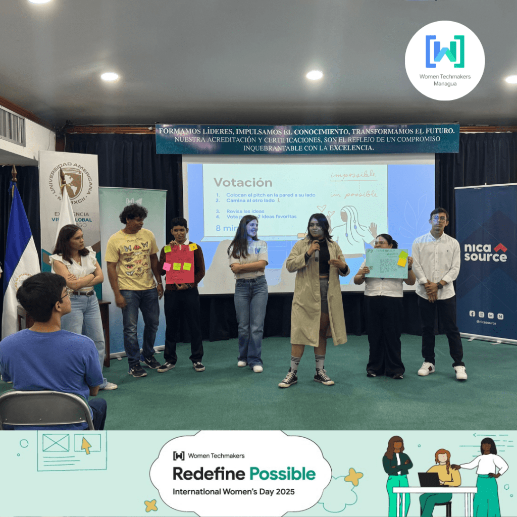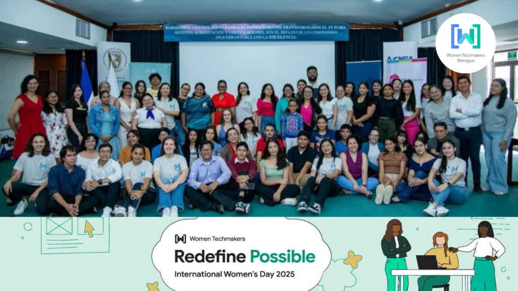 En el marco del Día Internacional de la Mujer, la comunidad Women Techmakers (WTM) de Managua realizó un evento inspirador bajo el lema “Redefiniendo lo Posible” donde reunió a 50 mujeres participantes entre estudiantes y profesionales del sector tecnológico, respaldado por el entusiasmo y compromiso de 10 voluntarias. La actividad tuvo como sede la Universidad Americana (UAM), en un ambiente cargado de energía, motivación y visión de futuro.