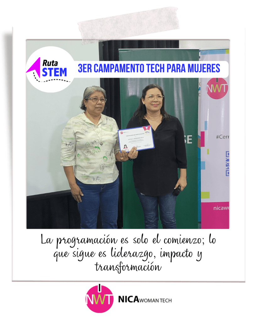 En el campamento participaron más de 25 mujeres quienes finalizaron sus sesiones prácticas el pasado 5 de abril. “Nos enorgullece haber contado con mujeres de diferentes edades, profesiones y ocupaciones, pero unidas con el mismo objetivo: crecer en tecnología”, comparte Lucía Morales De Franco, directora de Nicawomantech.