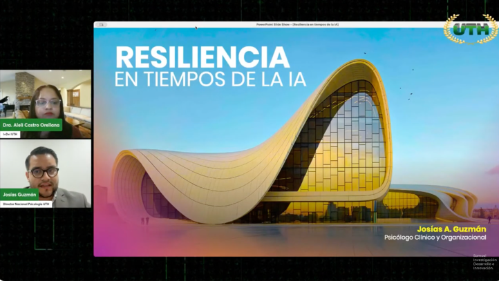 El conversatorio abrió con una intervención del Máster Josías Guzmán, director de psicología de UTH, quien propuso una metáfora entre la resiliencia humana y la capacidad de los materiales para absorber y recuperar su forma ante impactos. Tal como la arquitectura de Zaha Hadid transformó paradigmas en un entorno adverso, hoy los profesionales debemos “moldearnos” para integrar herramientas como la IA, sin perder nuestra esencia.