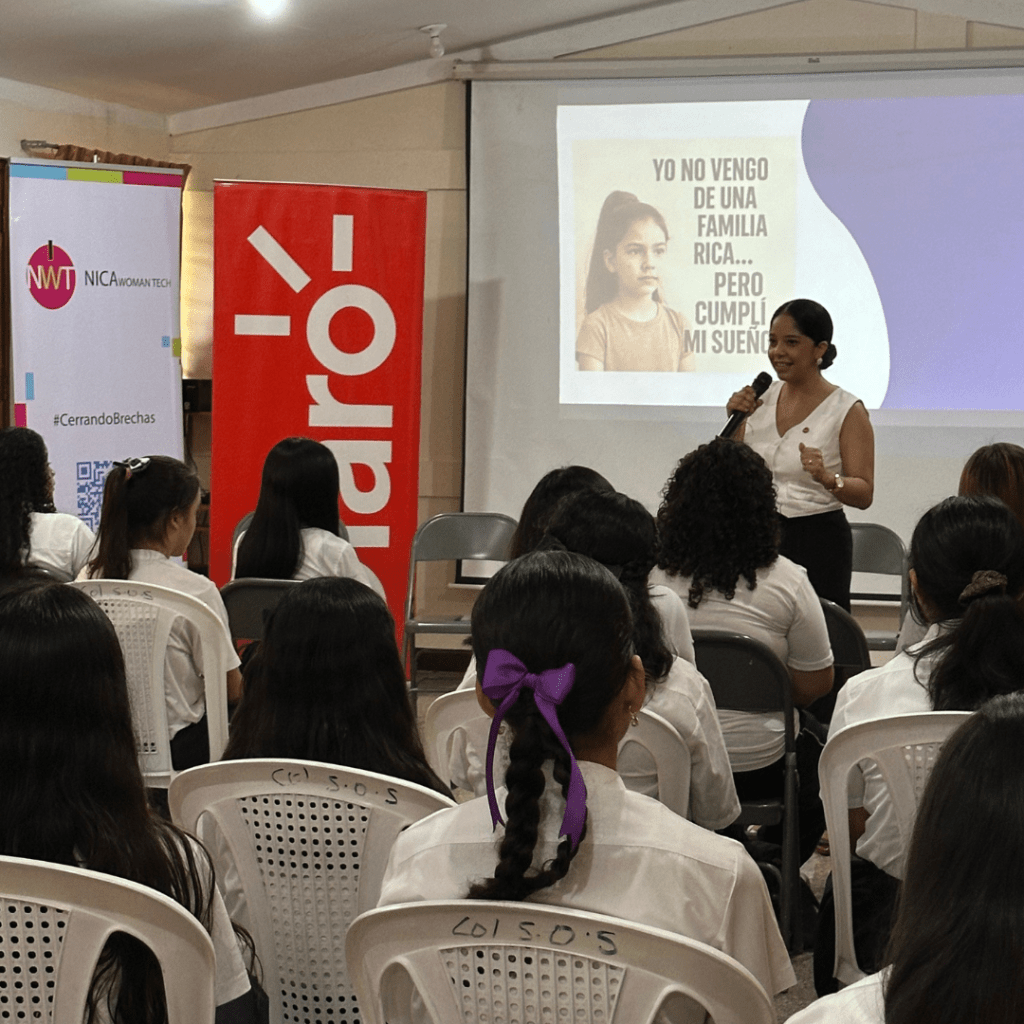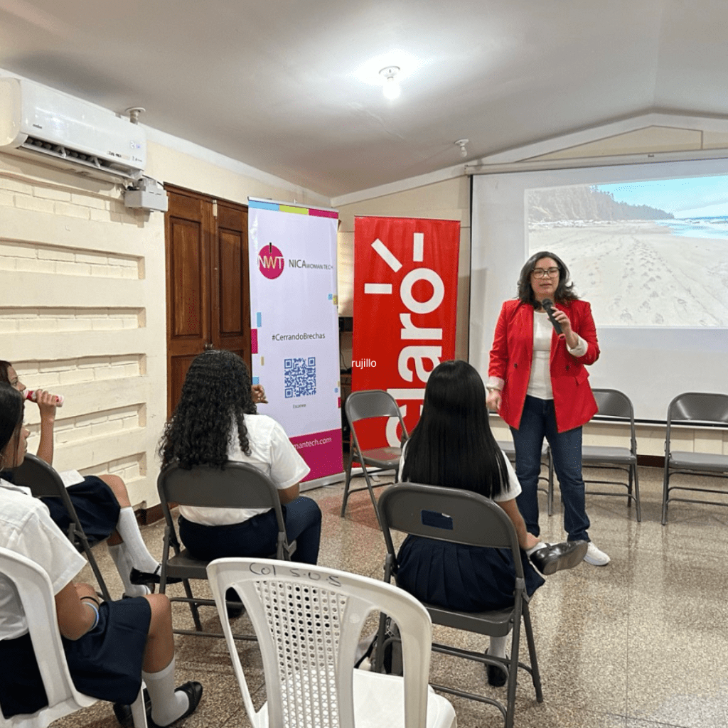 - Espacios de mentoría y visibilidad: Organiza charlas donde mujeres que trabajan en tecnología compartan sus historias. Ver a una ingeniera, una analista de datos o una experta en IA local hace que el sueño sea alcanzable. NICAWOMANTECH visita escuelas y organizaciones que nos invitan a brindar estas charlas, si te interesa puedes contactarnos para ver como te apoyamos.